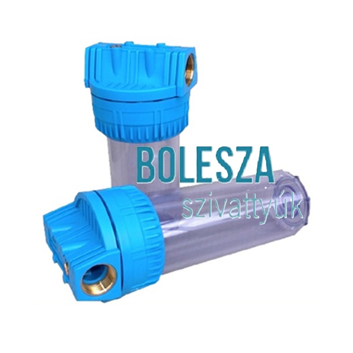 Víz szűrőház réz betéttel és átlátszó pohárral
