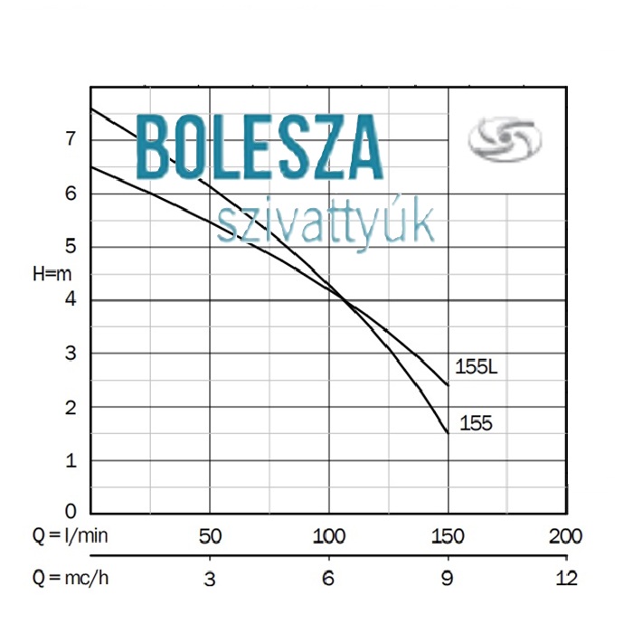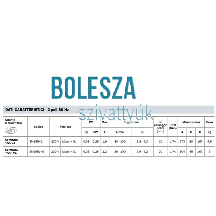 A BBC SEMINOX 155LM+G szennyezettvíz-szivattyú AISI304 INOX járókerékkel szerelt, és alkalmas maximum D 20 mm átmérőjű ” lágy ” szennyeződéseket tartalmazó, szennyezett vizek szivattyúzására is.