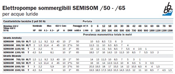 BBC SEMISOM 50-65 szennyvízszivattyúk leírása