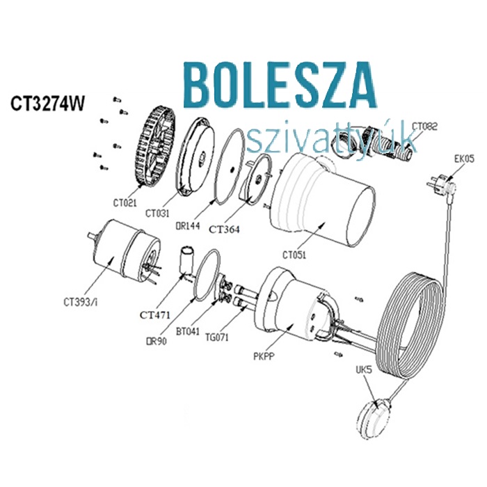 Az ELPUMPS CT3274W szivattyú valamennyi alkatrésze rendelhető, azonban a motor egy egységet képvisel, tehát a motorban található alkatrészek külön – külön csak részben rendelhetőek. A melléklet alkatrész listán és robbantott ábrán tudja beazonosítani a keresett alkatrészeket. Amennyiben bizonytalan, vagy műszaki segítséget szeretne kapni, úgy bizalommal forduljon Kollégáinkhoz. Igény esetén a szivattyú javítását is elvégezzük, aminek az átfutási ideje a mindenkori saját, illetve a gyártói raktárkészlettől és a szerviz letereltségétől függ. Kérem, hogy ezt javítási igény esetén vegyék figyelembe!