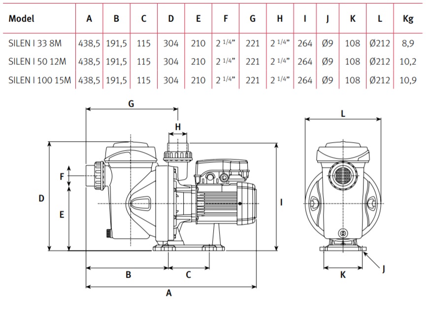 Ez az Ultra csendes működésű medence szivattyú alkalmas a folyamatos üzemre, max. 40°C folyadékhőmérséklet mellett.