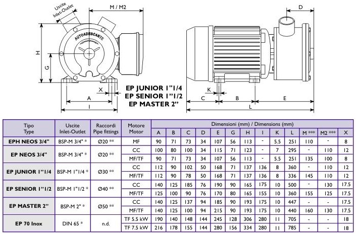 Bronz vagy saválló AISI 316 önfelszívó, folyadékgyűrűs centrifugál szivattyúk változtatható forgásiránnyal, rozsdamentes kézikocsival.Önfelszívó (a termék automatikus kiszívása akár 6 m mélyig, még szárazon is, azonban kenés nélkül a szivattyú károsodhat ).