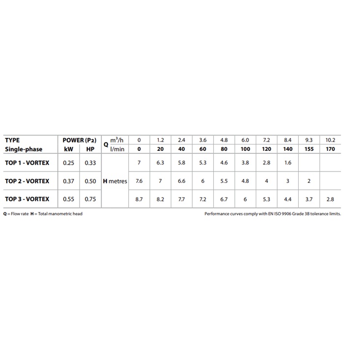 A PEDROLLO TOP1-VORTEX/GM-10 merülő szivattyúk szennyezett, és az alkatrészekre, kémiailag semleges víz szivattyúzására alkalmas.
