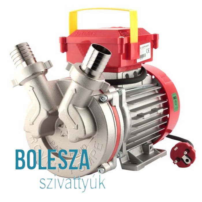 Járókerék: élelmiszerekhez alkalmas, korrózió kezeléssel rendelkező különleges ötvözet, rozsdamentes tengellyel gyártott, és tömlőcsonkokkal ellátott önfelszívó szivattyú.