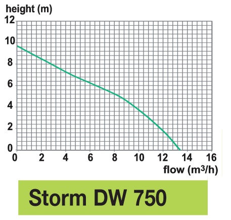 A DW 750 szivattyú kialakításánál fogva alkalmas enyhén szennyezett illetve szennyezett vizek alkalomszerű átemelésére.