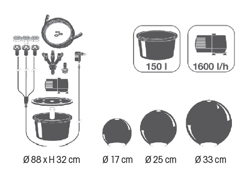 – Golyó átmérő: Ø 17/25/33 cm
