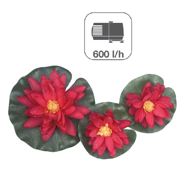 szivattyúval, harang vízkép fúvókával, 3 db piros mesterséges liliommal.